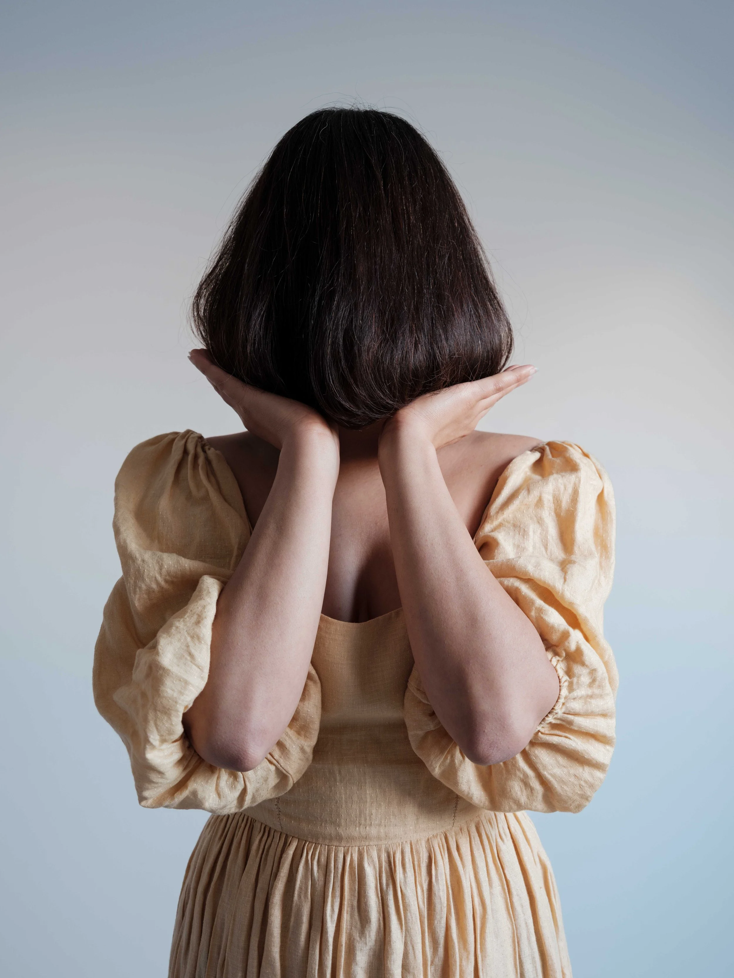 To grow up as an Iranian woman is to inherit a duality, to exist as two selves, one behind closed doors and another for the world outside. Self-censorship becomes instinctive, a survival mechanism in an enforced theocracy that forbids whatever it deems unacceptable, imposing its way of living under the promise of leading you to their version of paradise. A patriarchal system dictates how to dress, how to behave, and what to believe in, reinforced by religious warnings of punishment for showing hair, for questioning their god, for daring to step beyond their control. It still feels surreal, the power these strands hold, for them to be hidden, covered, controlled. I cradle what a religion fears, searching for the sin they claim to see.